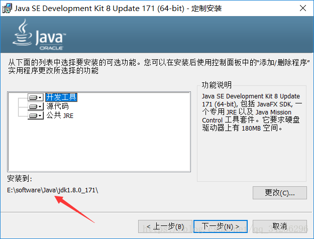 3.安装jre的文件路径也改下,改为 E:\software\Java\jre1.8.0_171\ ,最后安装目录如下所示(很清晰):