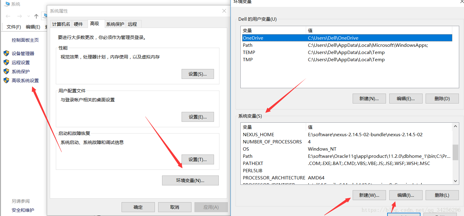 1.我的电脑 --> 右键属性 --> 高级系统设置 --> 环境变量